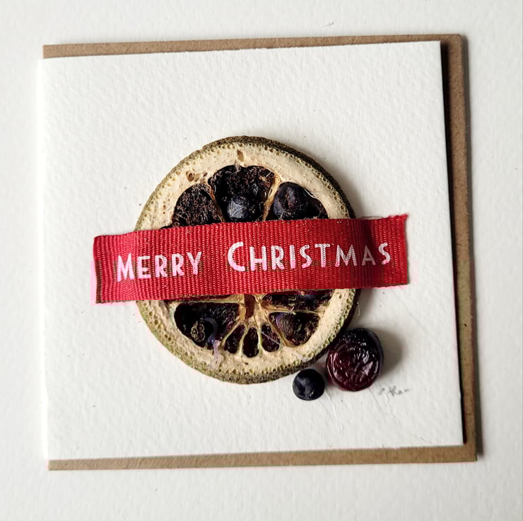Handmade and uniquely individual, dried fruit and spices greeting card with a subtle scent.