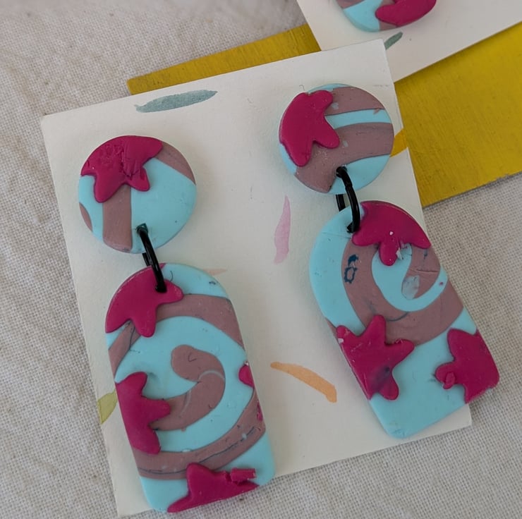 Lightweight and comfortable to wear, these one-of-a-kind polymer clay earrings complement any style and are perfect for all ears.