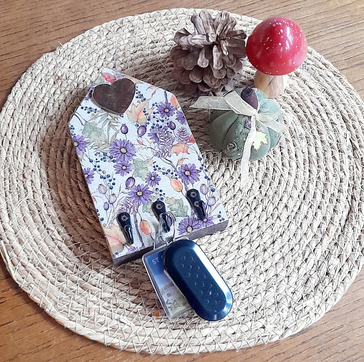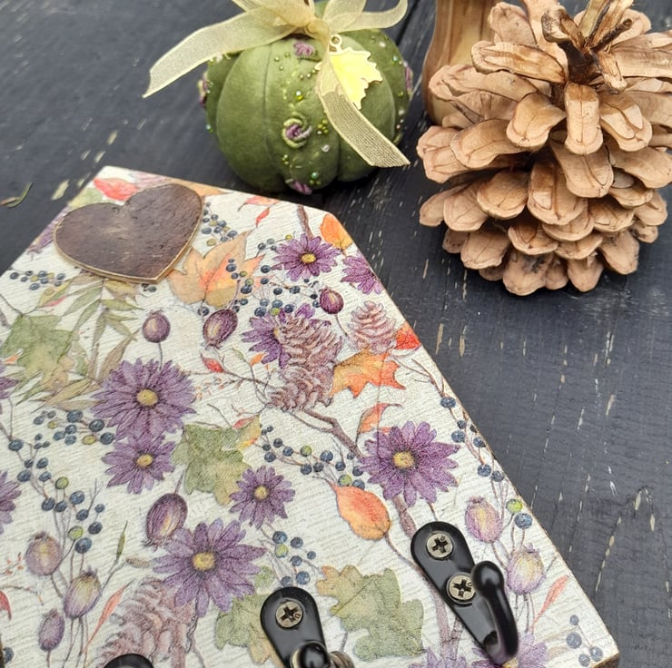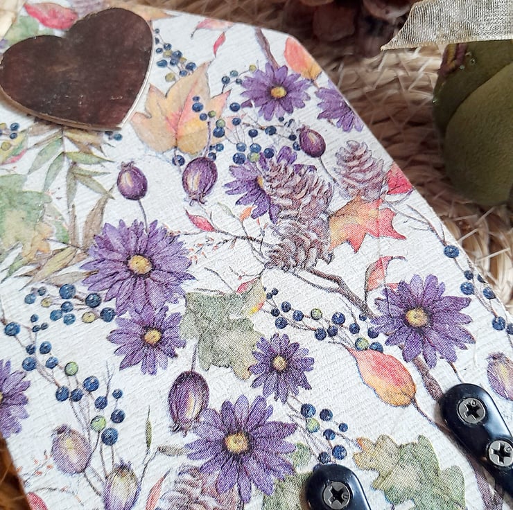 Decorated with a Decoupage of lovely Autumn flowers & finished with a little heart.