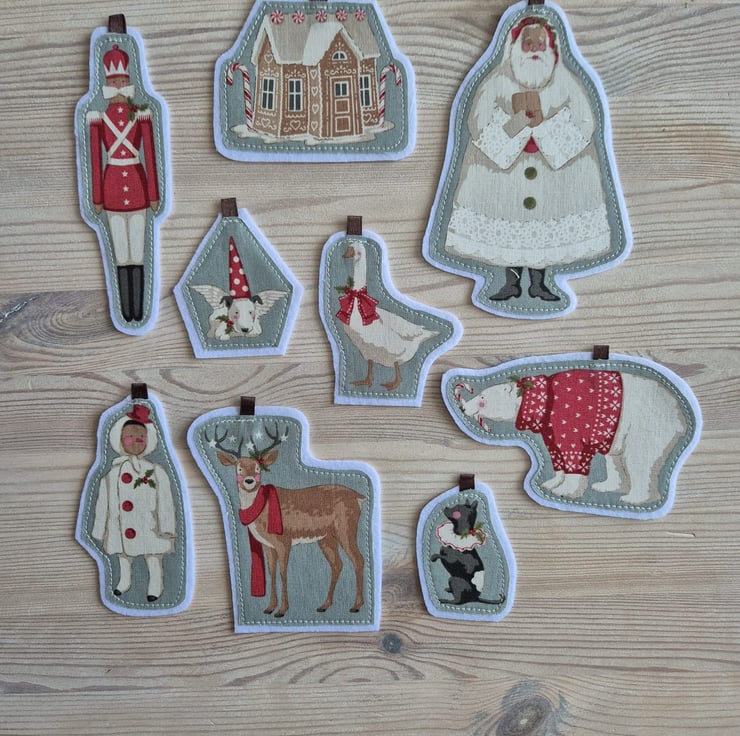 Tilda Fabric Christmas Hanging 9 Ornaments
