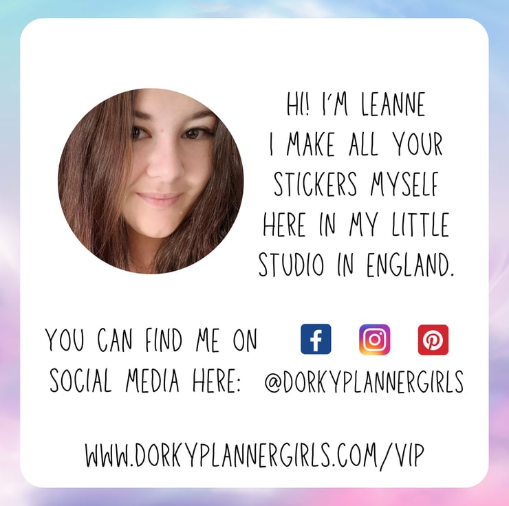 If you would like to save 15% off your order with us, please visit our website to join our VIP email group. www.dorkyplannergirls.com/VIP