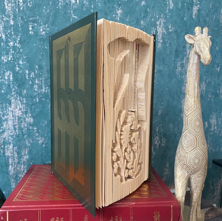 Materials: Hand-folded art made from recycled books, offering a unique, eco-conscious decoration.