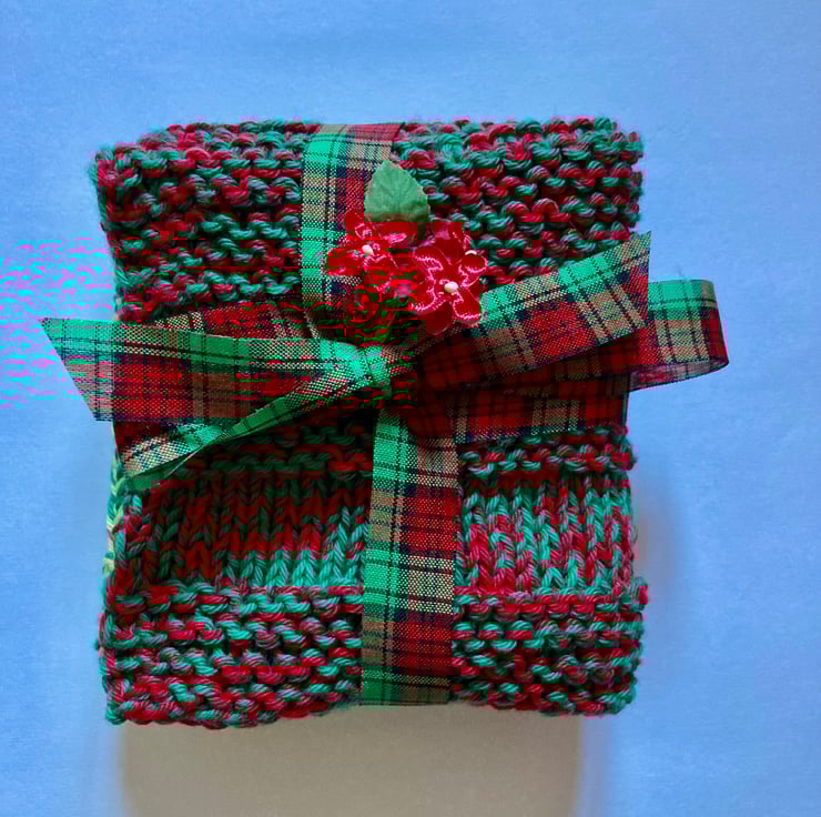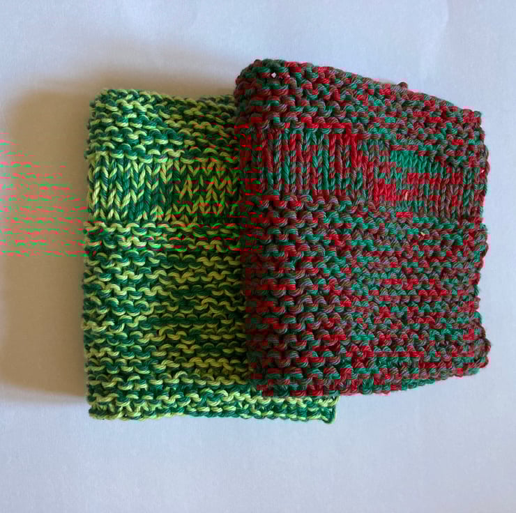 Both of these hand knitted eco friendly dish cloths are made from 100% cotton.