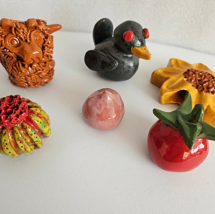In 2003, as a keen gardener I wanted some cane tops, but they were all very boring and plastic. Working in my pottery one day messing around with a bit of left-over clay, I started making a toadstool, my husband came in and asked what I was making, and I said not sure! He came back with a bamboo cane and said "Cane Tops" - boom excellent idea. I have sold them at various garden shows in the UK and here on Folksy.