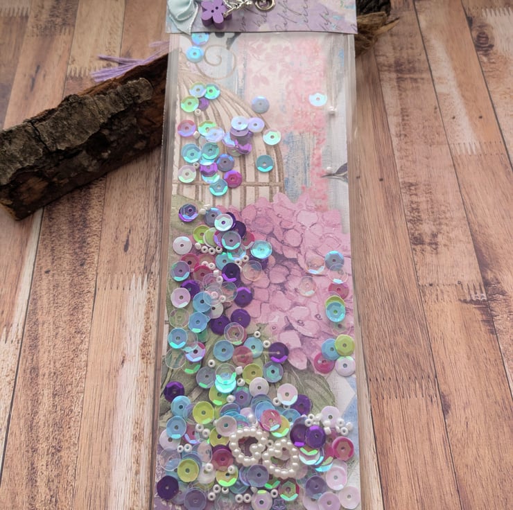 This beautiful shaker bookmark in delicate shades of pastel makes a great gift or stocking filler in the festive season.