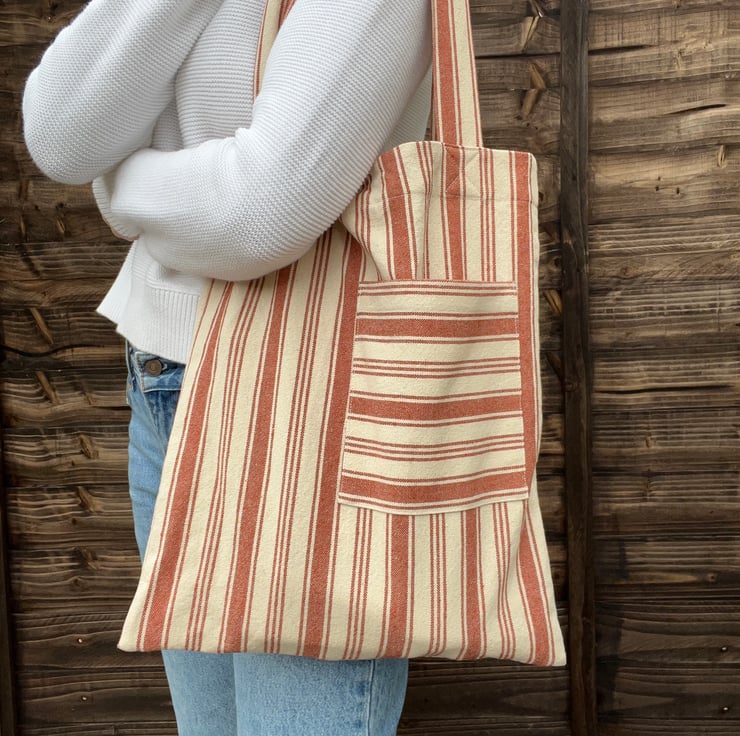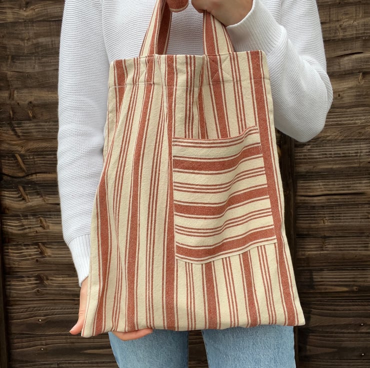 Carry your essentials in style with this cotton tote bag! Featuring a classic striped pattern, this eco-friendly reusable market bag is perfect for groceries, books, or everyday outings. Lightweight yet durable, with a roomy interior and a handy front pocket, it’s the ideal everyday tote for work, school, or casual days out.
