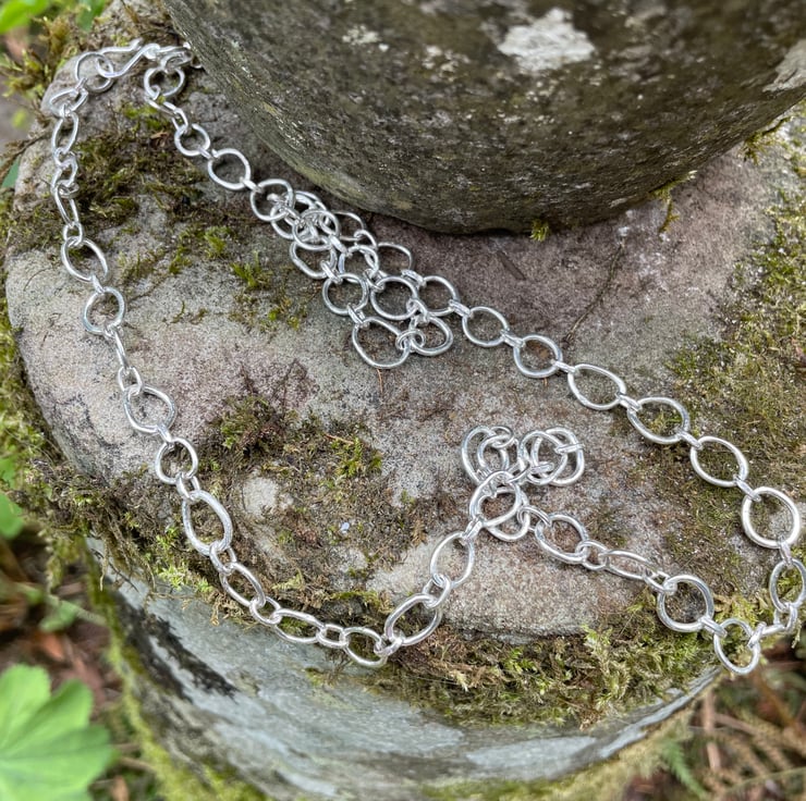 Sterling silver Stepping Stones chain necklace, available in many lengths.