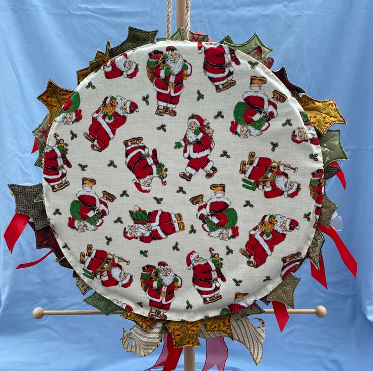 Ready to hang with a rope loop and finished with a Father Christmas fabric on the back.