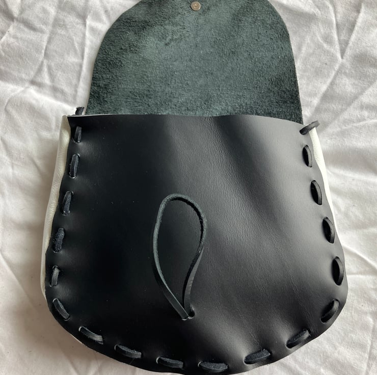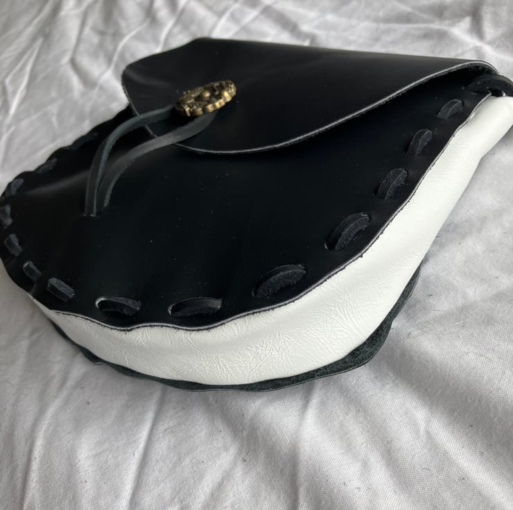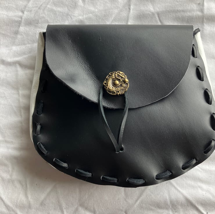 Pouch: Black & White coloured Leather Medieval Style W Dragon Closure