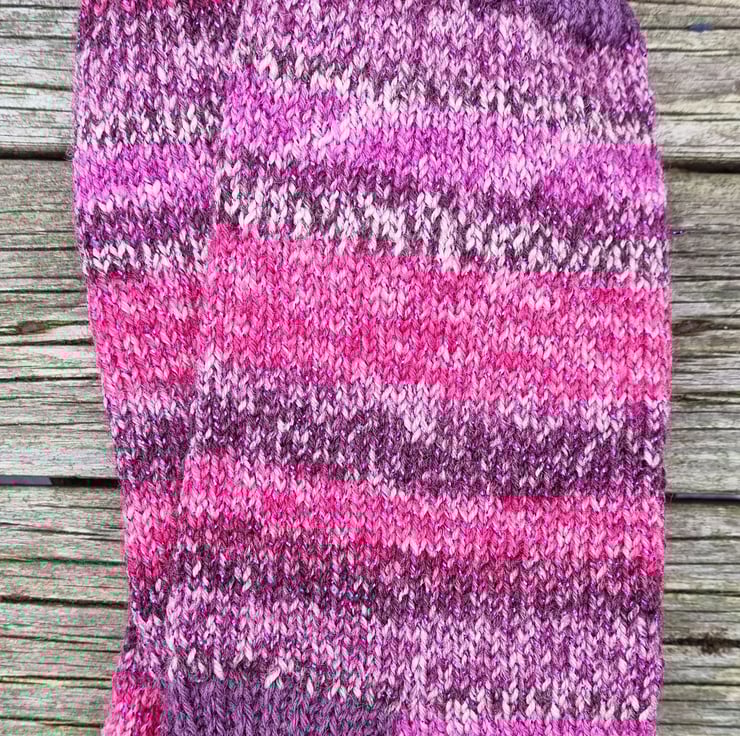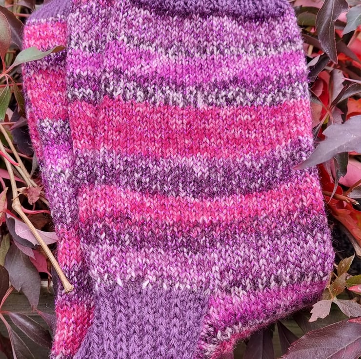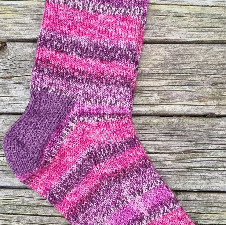 Slight sparkle in yarn, contrasting cuff, heel and toe.