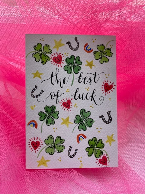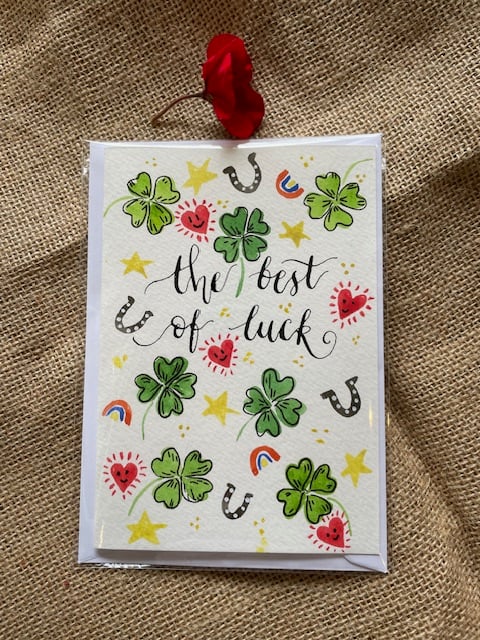 Wish someone success in a truly meaningful way with this handmade "Best of Luck" card, crafted with care using black ink and delicate calligraphy on premium textured paper. Each card is handwritten and one of a kind - no prints, no copies, just heartfelt artistry.