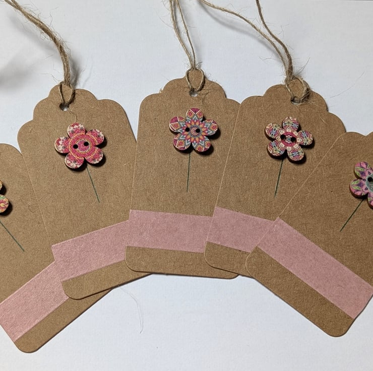 Homemade gift tags made with buttons in packs of 5 - flower buttons