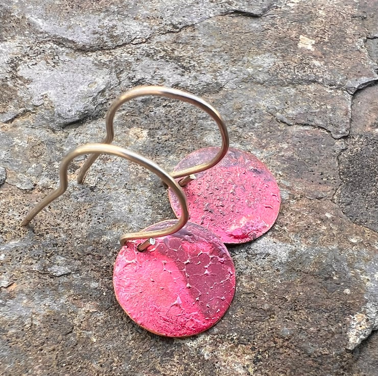Red Copper Circle Dangle Earrings