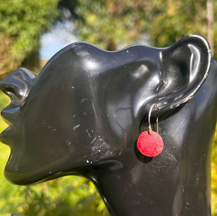 The discs hang from handmade sterling silver ear hooks and the total length is 25mm/ 1 inch.