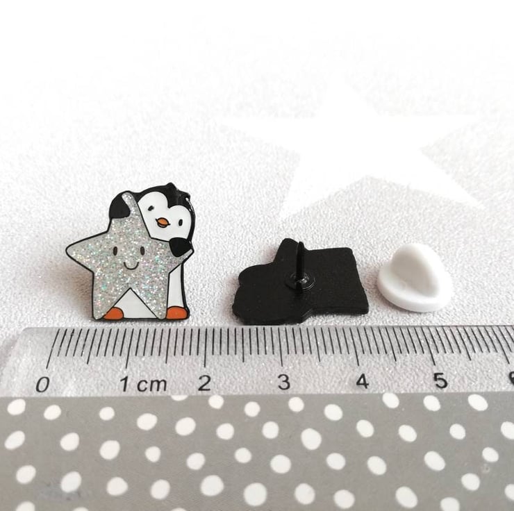 It is a little pin and measures approximately 2cm in height with a rubber clutch back.