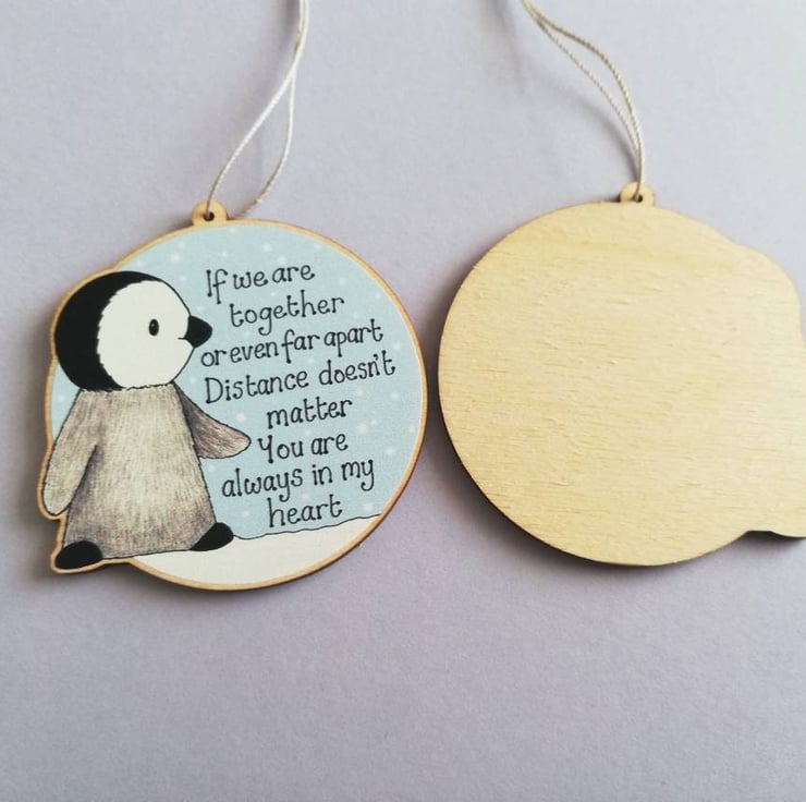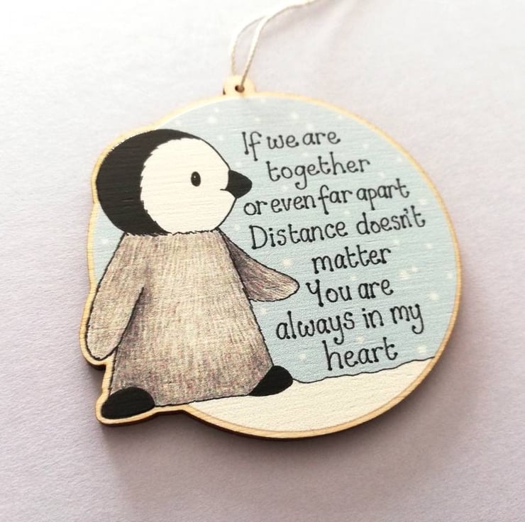 Little grey penguin chick, with the wording - If we are together, or even far apart, distance doesn't matter you are always in my heart