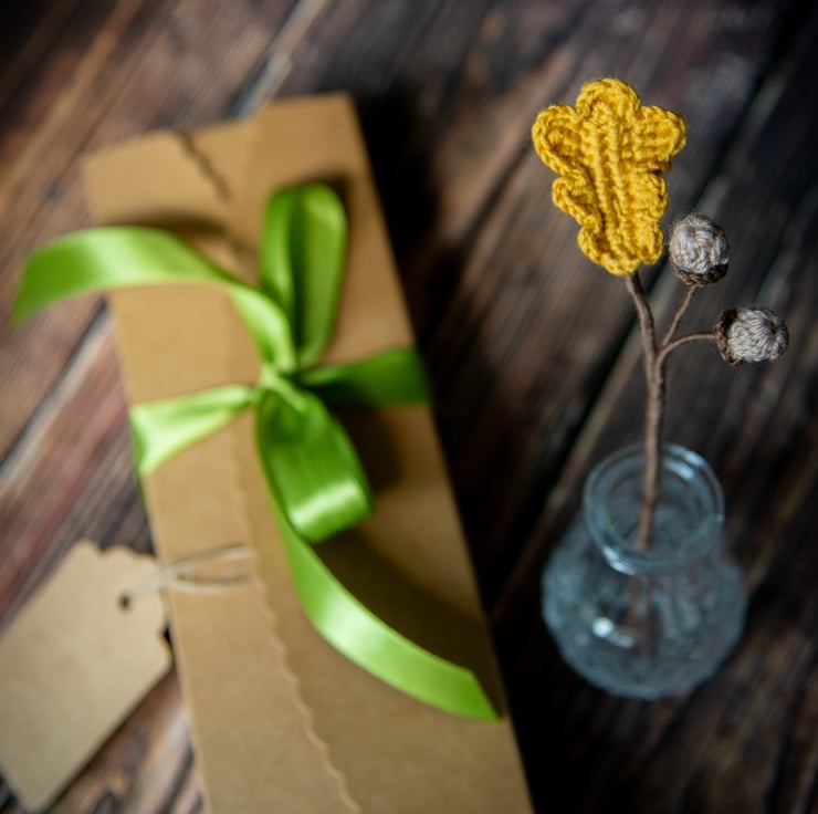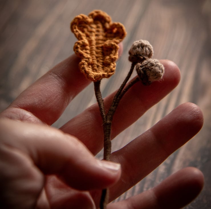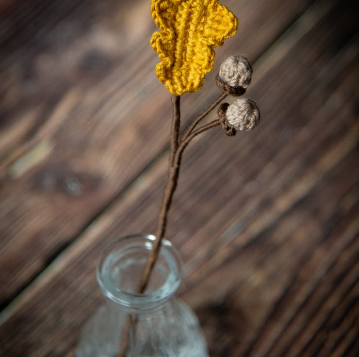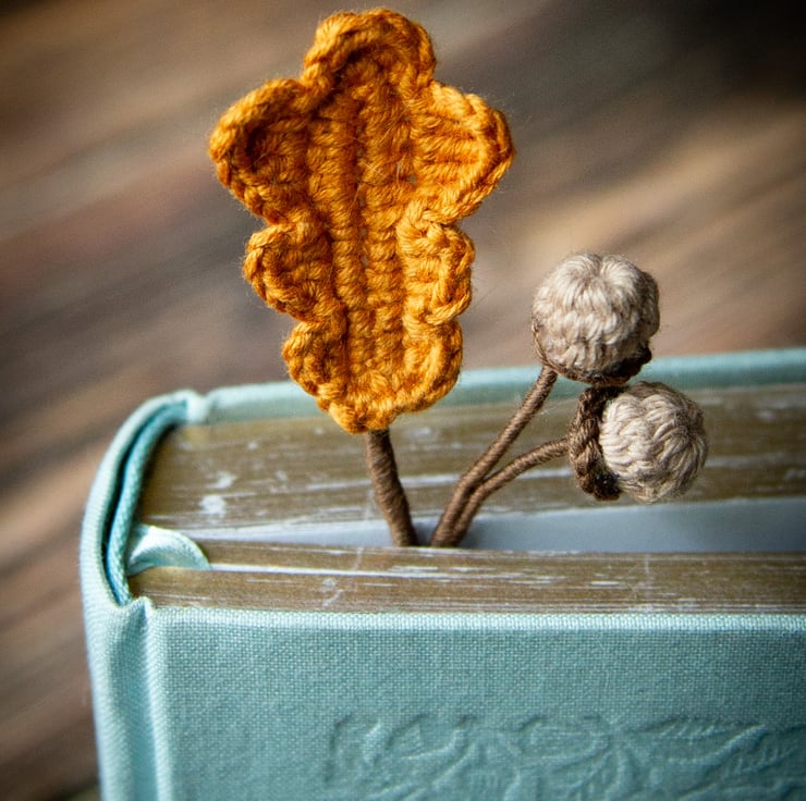 Oak Leaf Bookmark - Celebrate the turning of the seasons with this handcrafted crochet bookmark, inspired by woodland walks and golden leaves. A perfect gift for a book lover or a plant lover, someone of romantic nature, stationery fan or autumn season enthusiast. Can also be used as a decor item, it looks as good in a vase as it looks in a book. A symbol of wisdom, protection, and renewal.