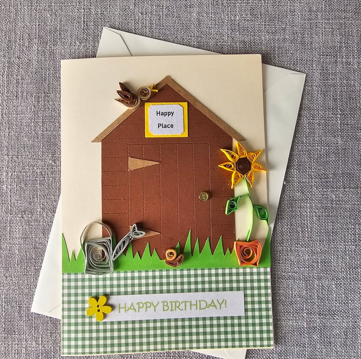 Garden Shed Birthday Card with Quilled Details Size 7" x 5" (18cm x 12.5cm)