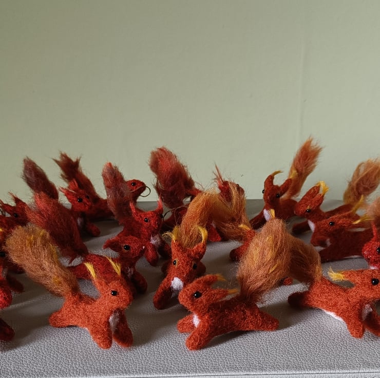 This listing is for the dark red coloured squirrel which is depicted in the first three pictures. I have a separate listing for the ginger one to allow me to accurately indicate the stock that I have for each colour.