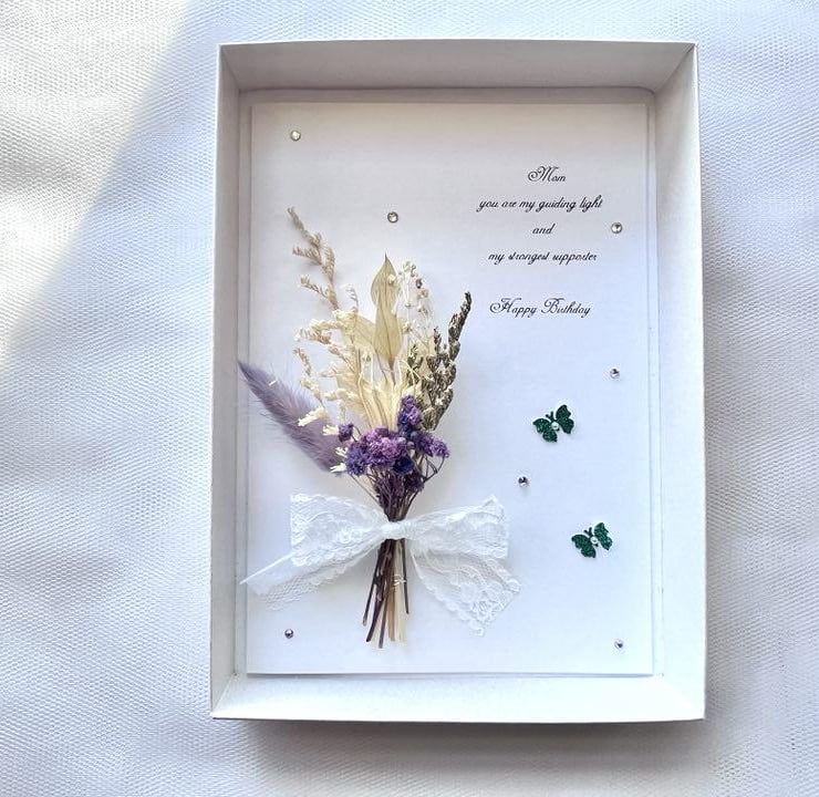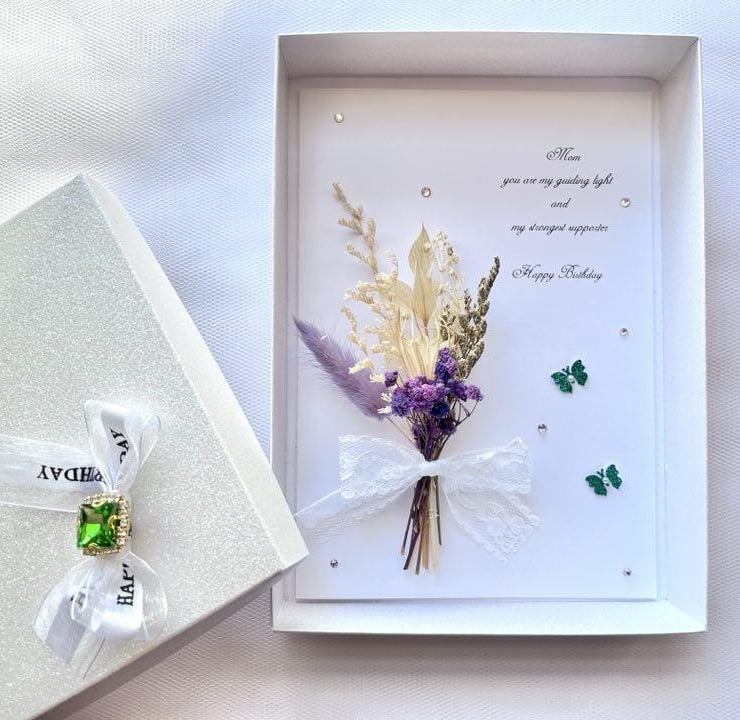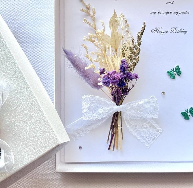 This lovely 3D Card handmade with dried flowers. Dried flowers are 100% natural and unique. They may be kept for 1-2 years. This original gift is unique and will be pleasant for anyone. Due to the 100% handmade products, you may receive vary slightly from the product. Viewing on your computer monitor may appear different than the actual colour of the products.