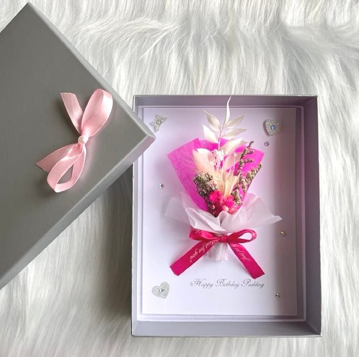 This lovely 3D Card made with preserved flowers. They are 100% natural and unique. They may be kept for 1-2 years. This original gift is designed by us, it is unique and will be pleasant for anyone. Due to the 100% handmade products, you may receive vary slightly from the product.