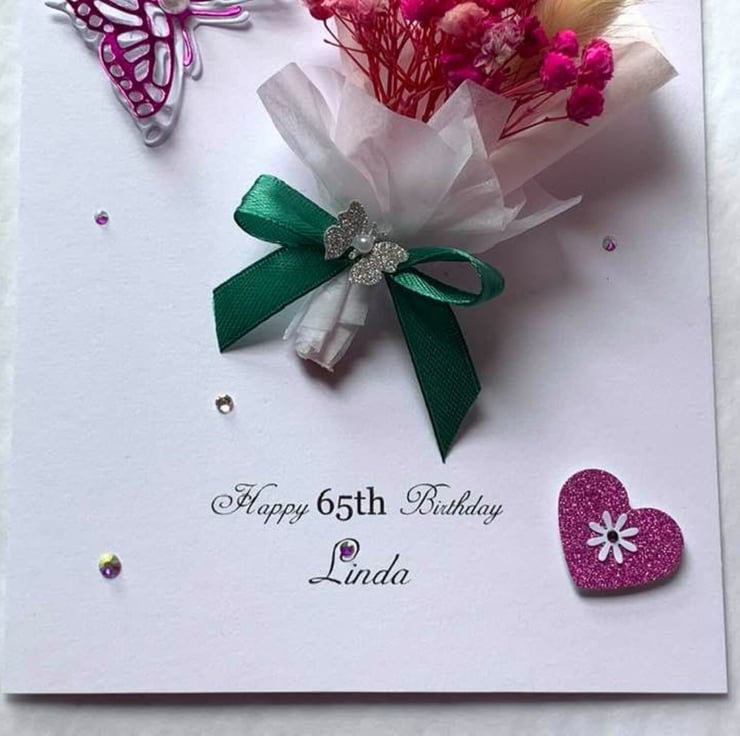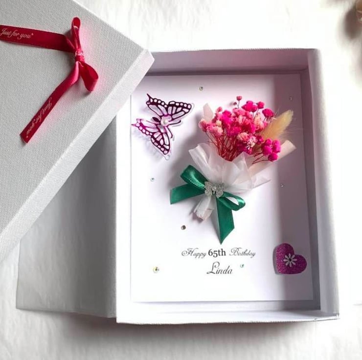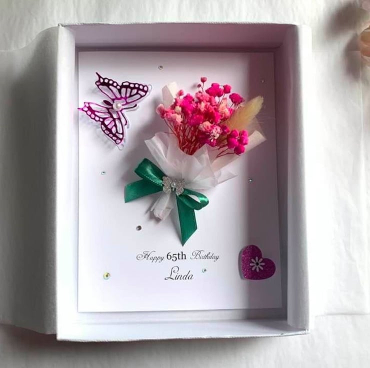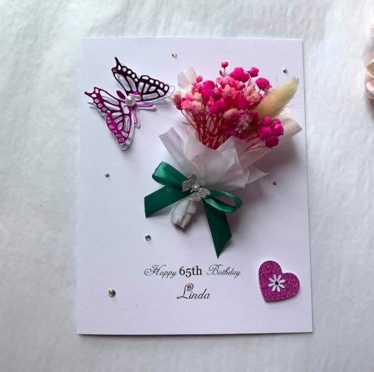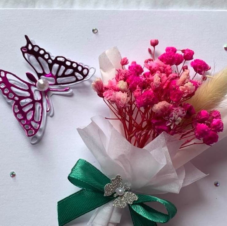 Handmade 3D Dried Flower Birthday Card: Personalized Bouquet C005