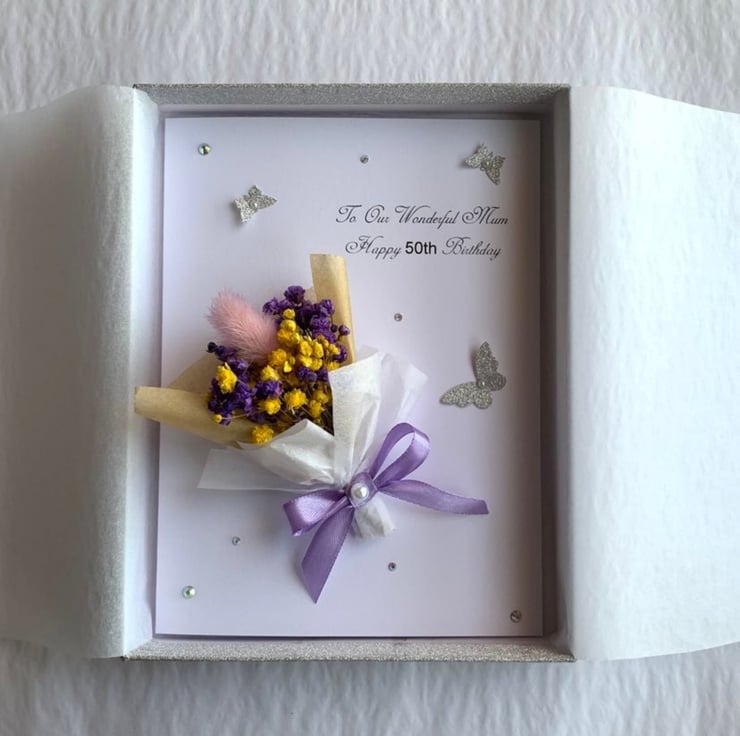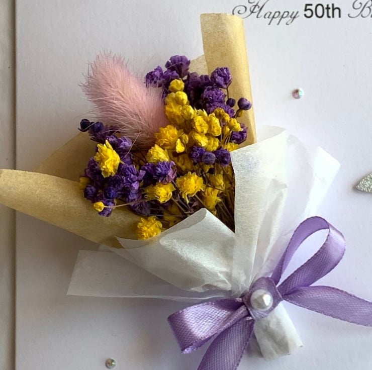 Handmade Personalised Birthday Card, 3D Dried Flower Birthday Card C044