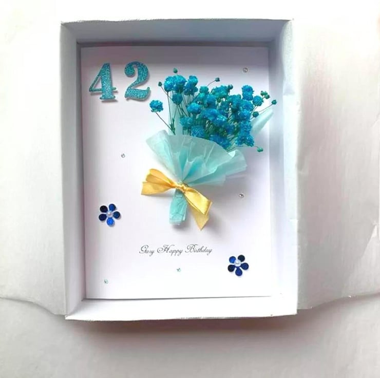 This lovely 3D Card made with preserved flowers. They are 100% natural and unique. They may be kept for 1-2 years. This original gift is designed by us, it is unique and will be pleasant for anyone. Due to the 100% handmade products, you may receive vary slightly from the product.