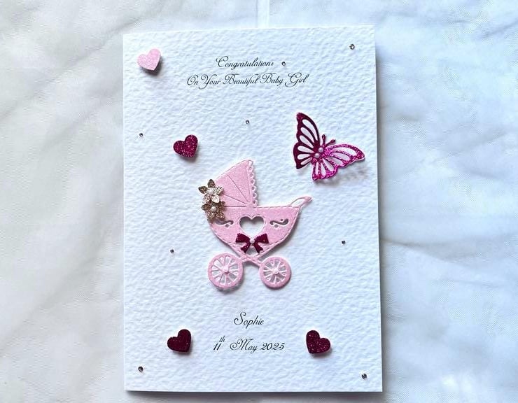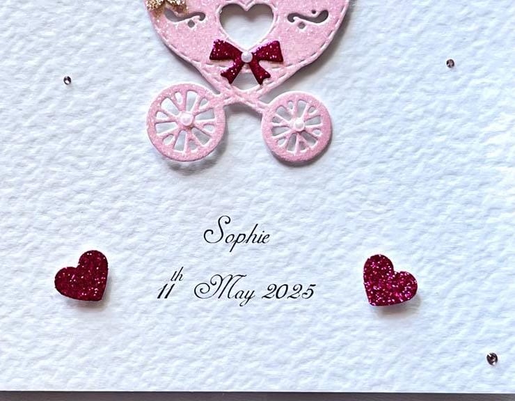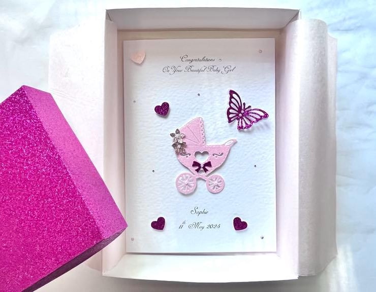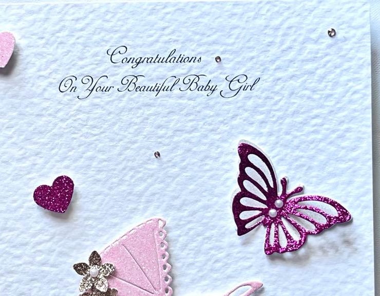 This lovely new born card is one of our unique designs. Viewing on your computer monitor may appear different than the actual colour of the products.