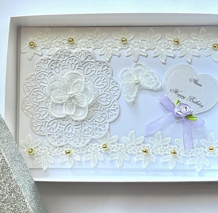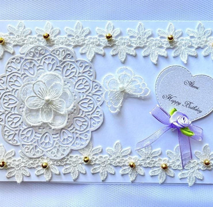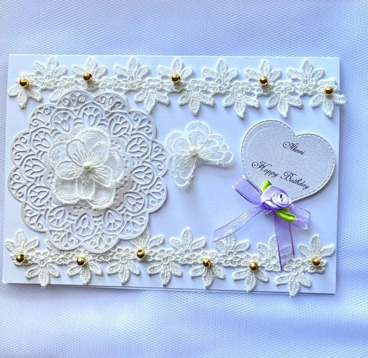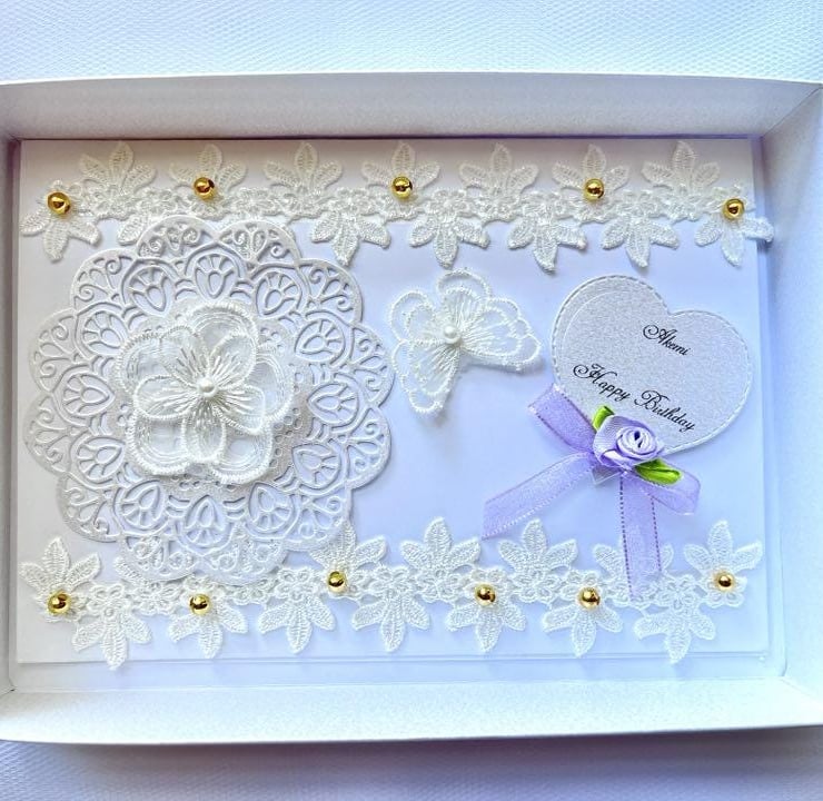 This original lovely 3D lace card is unique and will be pleasant for anyone. Due to the 100% handmade card, you may receive vary slightly from the product. Viewing on your computer monitor may appear different than the actual colour of the products.