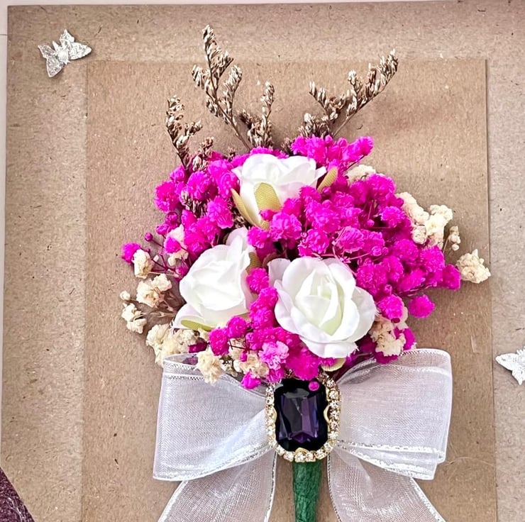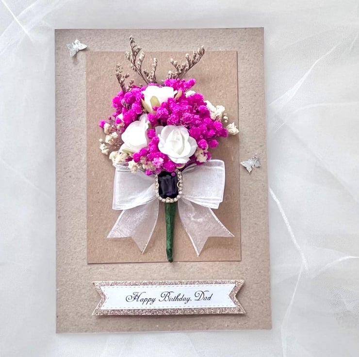 This lovelyflower birthday Card made with dried flowers and artificial flowers. This original gift is unique and will be pleasant for anyone. Due to the 100% handmade products, you may receive vary slightly from the product. Viewing on your computer monitor may appear different than the actual colour of the products.
