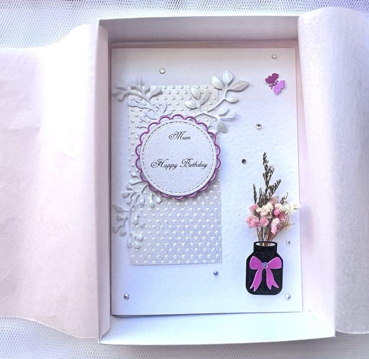 This lovely 3D birthday card is unique and will be pleasant for anyone. Due to the 100% handmade products, you may receive vary slightly from the product. Viewing on your computer monitor may appear different than the actual colour of the products.