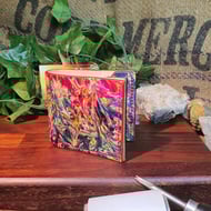 Large decorative dog collar. Made from 4mm veg tan leather thats been marbled dyed here in our studio on Dumfries and Galloway. This item has been saddle stitched with waxed thread and has Le Tech Orange edge paint. The hardware is made in the UK and is stainless steel.