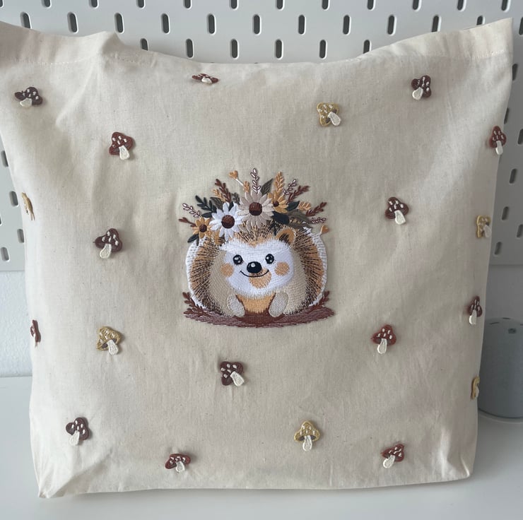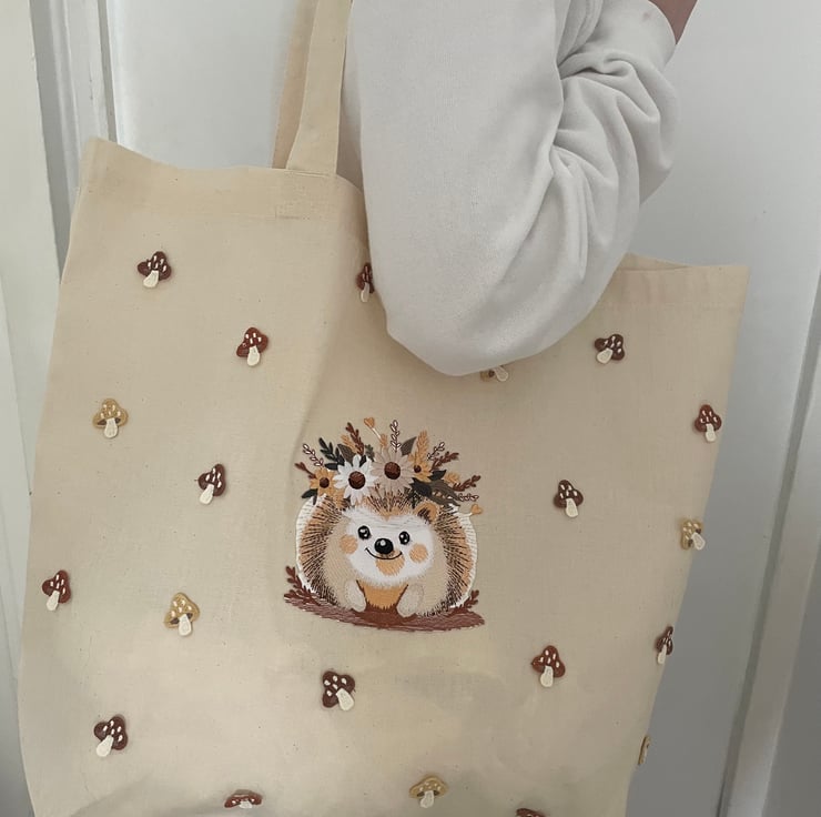 I wanted to create a fun happy autumnal feel to this bag, and spotted this cute hedgehog patch when looking for supplies. I made one for my mum who has had lovely comments when out shopping. Its made her shopping experience even more enjoyable and so i wanted to do the same for other people. I love sewing and enjoy creating these lovely tote bags.