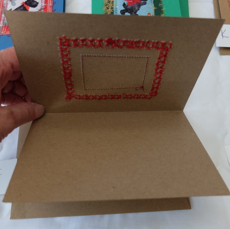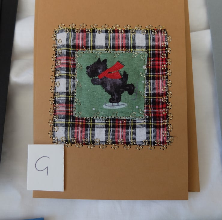 I found a lovely pack of fabric with lots of Christmassy Scottie dogs enjoying themselves, so decided to make some cards.