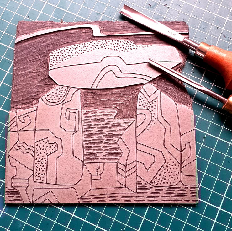 Using my imagination and memories of visiting a chambered tomb on Anglesey in North Wales and images of dolmens to create a unique design.