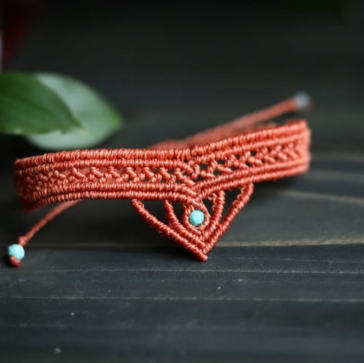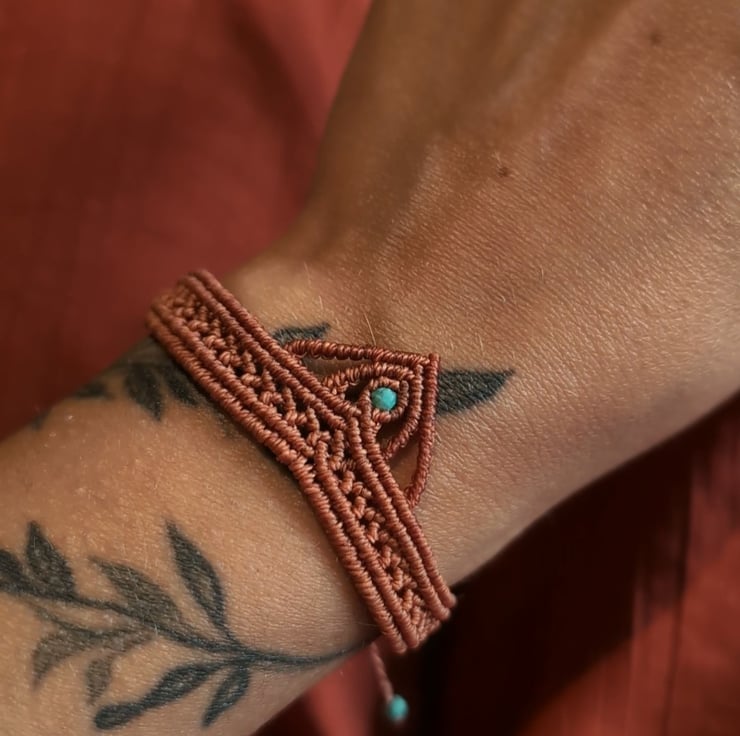 Macrame adjustable bracelet in terracota with natural stone peruvian turquoise.