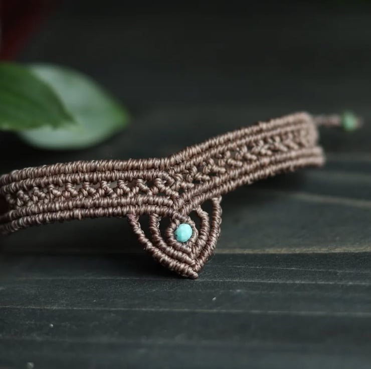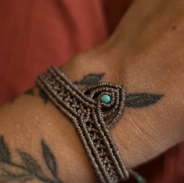 Macrame adjustable bracelet in taupe with Peruvian Turquoise