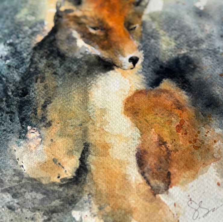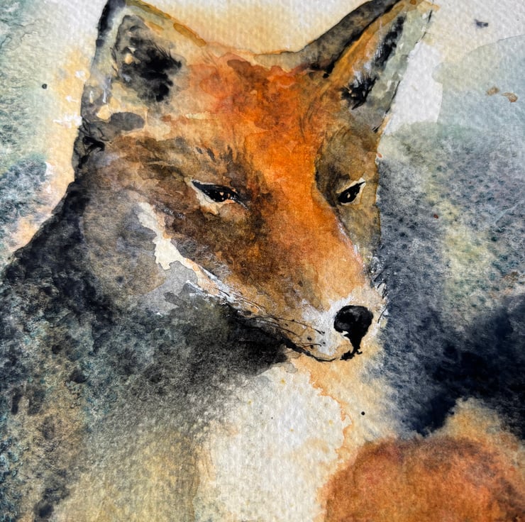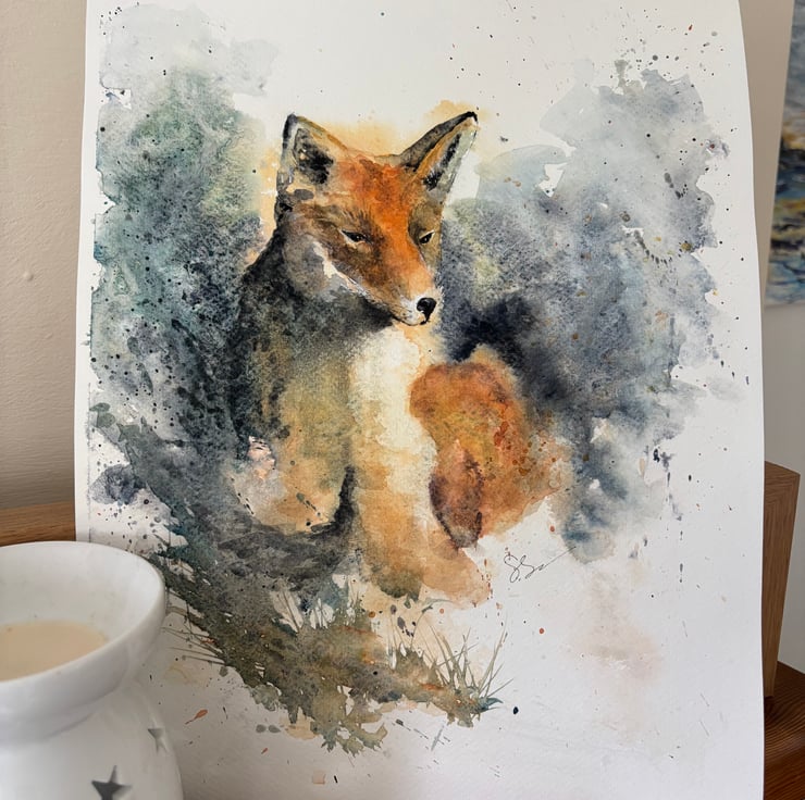 Beautiful wise fox captured resting in the undergrowth watching the world go by. Full of interest and texture, a perfect gift of an original watercolour painting that will certainly make you stand out from the crowd. The painting measures 11” x 14” approx and will be shipped in a presentation mount ready for gifting or framing.