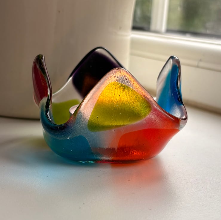 This is another of my unique handmade fused glass tea lights. This is keeping with my new Art Deco style collection. This tea light will make an ideal gift, or something a little special for your own home.