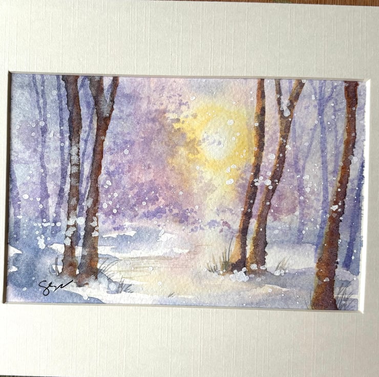Beautiful A5 sized painting capturing the beauty and light of a bright winter day. Original painting will be shipped in a presentation mount ready to gift or frame.