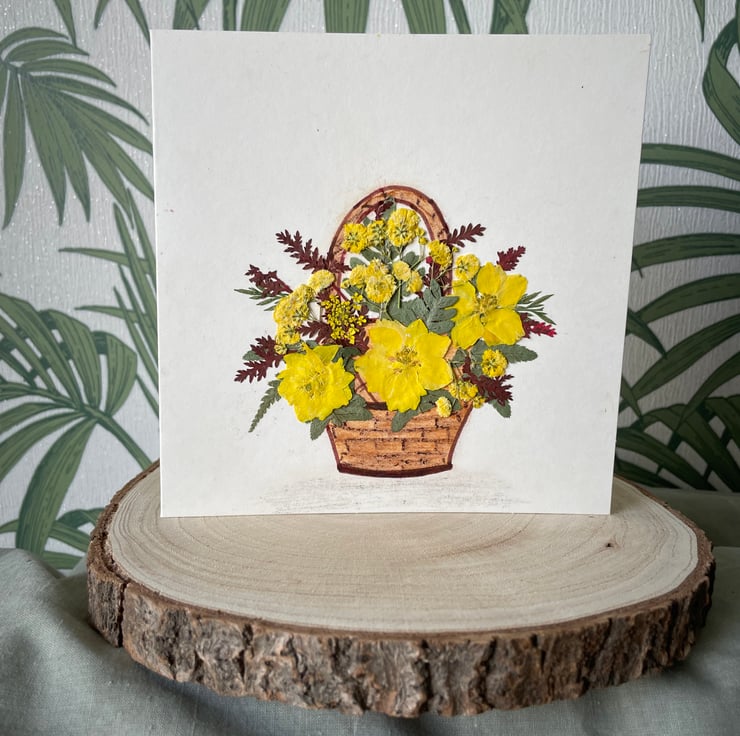 I used to work in a florist and love working with flowers, I transferred my flower arrangements onto cards for everyone to enjoy using pressed dried flowers and hand drawn containers.