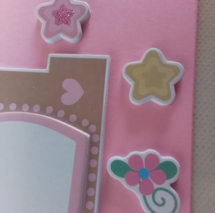This measures approximately 10.5 x q4.5 cm and comes with a pink envelope.