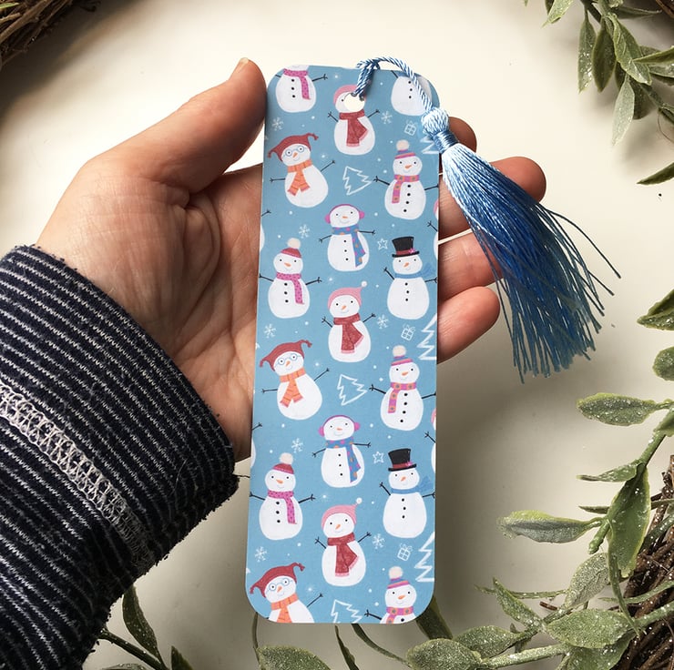 Christmas Snowmen illustrated Laminated Bookmark with coloured Tassel.