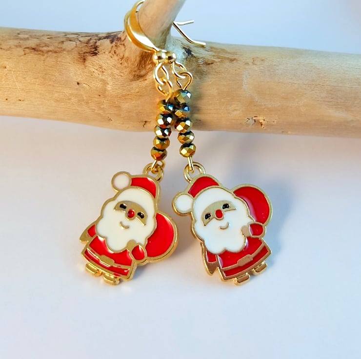 Santa Christmas Earrings, Sparkly Stocking Filler, Secret Santa, Gift For Her