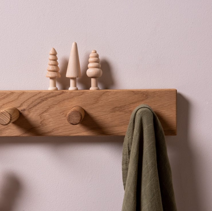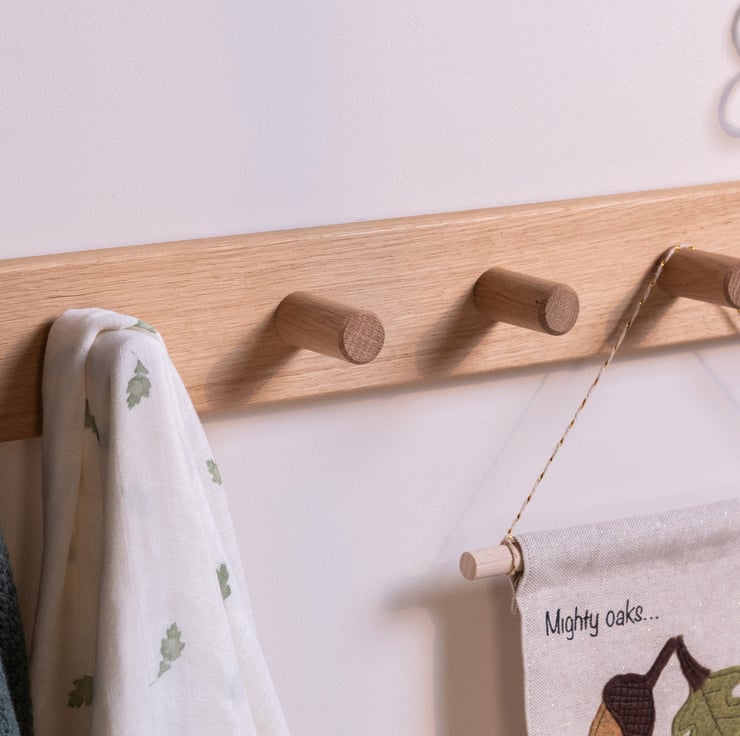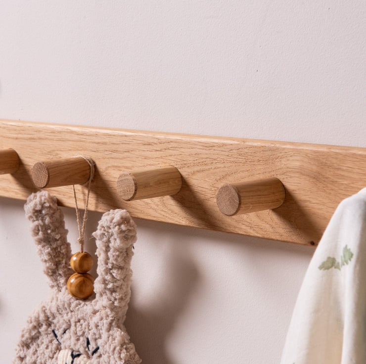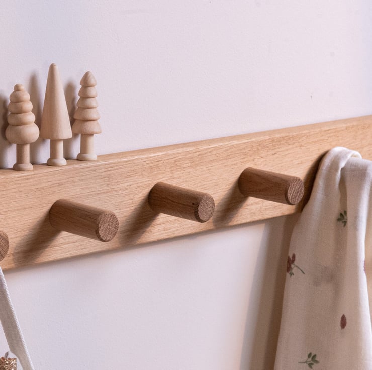 Our peg rails are the perfect addition to your child s bedroom, playroom or indeed any room of the house. While each piece will display unique grain patterns, all our furniture is made with the same, high quality, FSCPEFC certified woods and finished with a child safe wood oil.