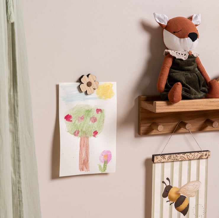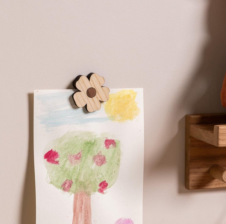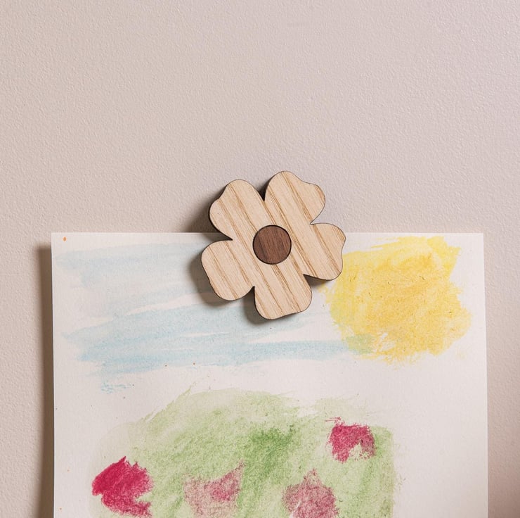 Flower Wall Magnet - Ash and Walnut. For Holding Children's Artwork, Posters
