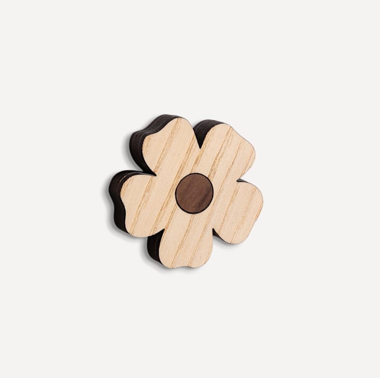 A two-part magnetic flower hanger for kid's artwork and prints. Made with Ash and Walnut veneered MDF.