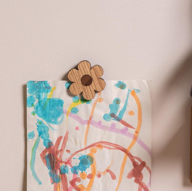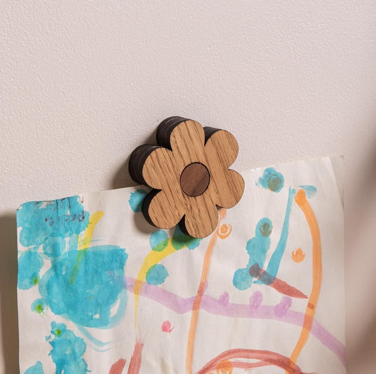 Flower Wall Magnet - Oak and Walnut. For Holding Children's Artwork, Posters.