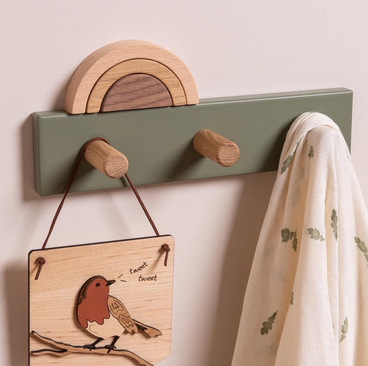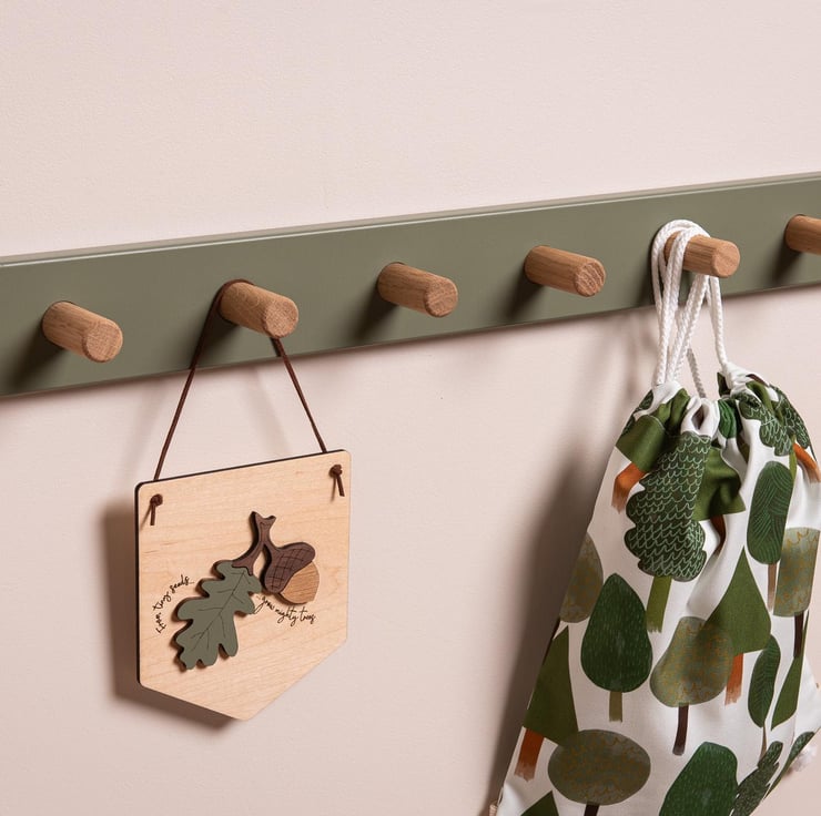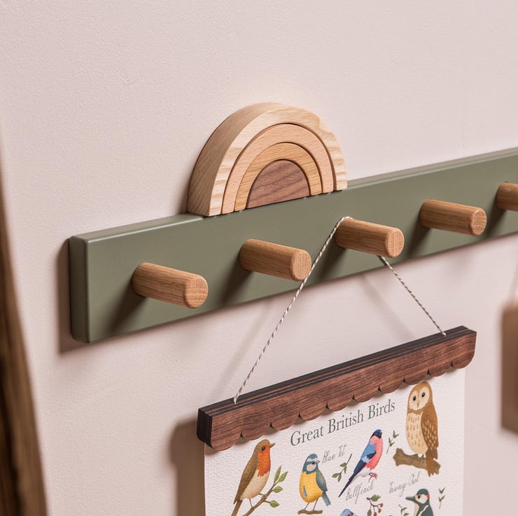 Our peg rails are the perfect addition to your child s bedroom, playroom or indeed any room of the house. While each piece will display unique grain patterns, all our furniture is made with the same, high quality, FSCPEFC certified woods and finished with a high quality, Italian, water-based paint.